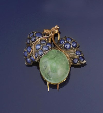BERYL, COLORED SAPPHIRE AND CULTURED PEARL BROOCH, VERDURA ... from www.christies.com